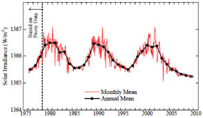 Dopo un lungo periodo di intensa attività nell’anno 2007/2008 il sole ha cominciato a indebolire sempre più la sua attività continuando a indebolire il suo campo magnetico e di conseguenze la quantità di irradiamento che esso stesso emette